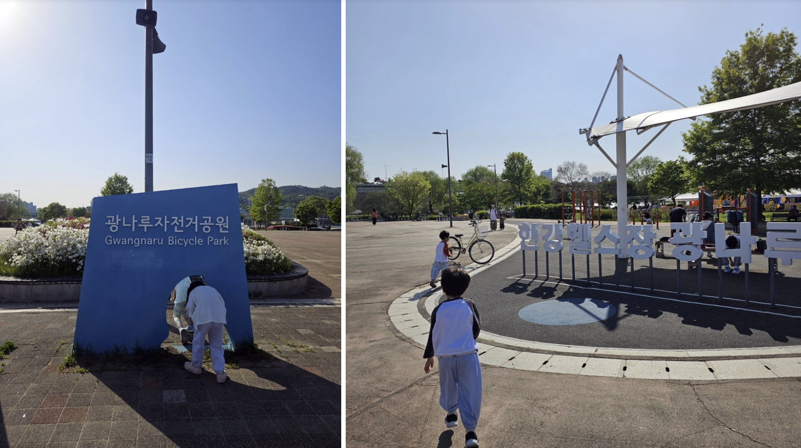 광나루 한강공원에서 2026년부터 서울시가 새롭게 운영 중인 야외형 키즈카페 '여기저기 서울형 키즈카페'를 이용할 수 있습니다.