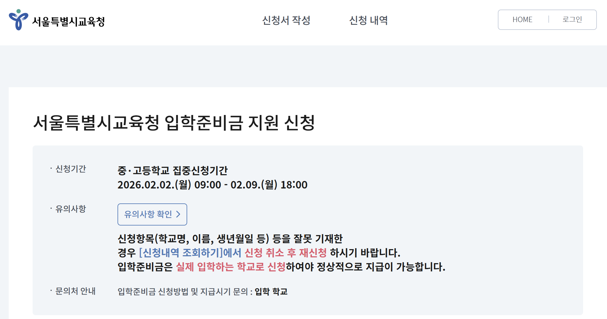 근거법령: 서울특별시교육청 입학준비금 지원 조례