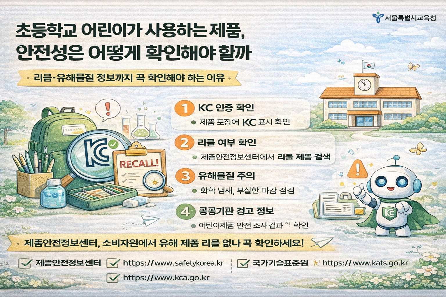초등학교 어린이가 매일 사용하는 가방, 필통, 학용품은 단순한 소비재가 아닙니다. 접촉 시간이 길고 사용 빈도가 높기 때문에 제품의 안전성은 아이의 건강과 직결되는 문제입니다. 정부는 이러한 문제를 사전에 예방하기 위해 제품안전정보센터를 설치하여 제품사고정보를 수집하고 관리하며, 리콜 정보를 신속하게 제공하고 있습니다. 이 글에서는 제품안전정보센터의 역할과 함께 학부모가 반드시 확인해야 할 리콜 정보, KC 인증, 그리고 어린이 제품 안전 관리 체계를 구체적으로 살펴보겠습니다.