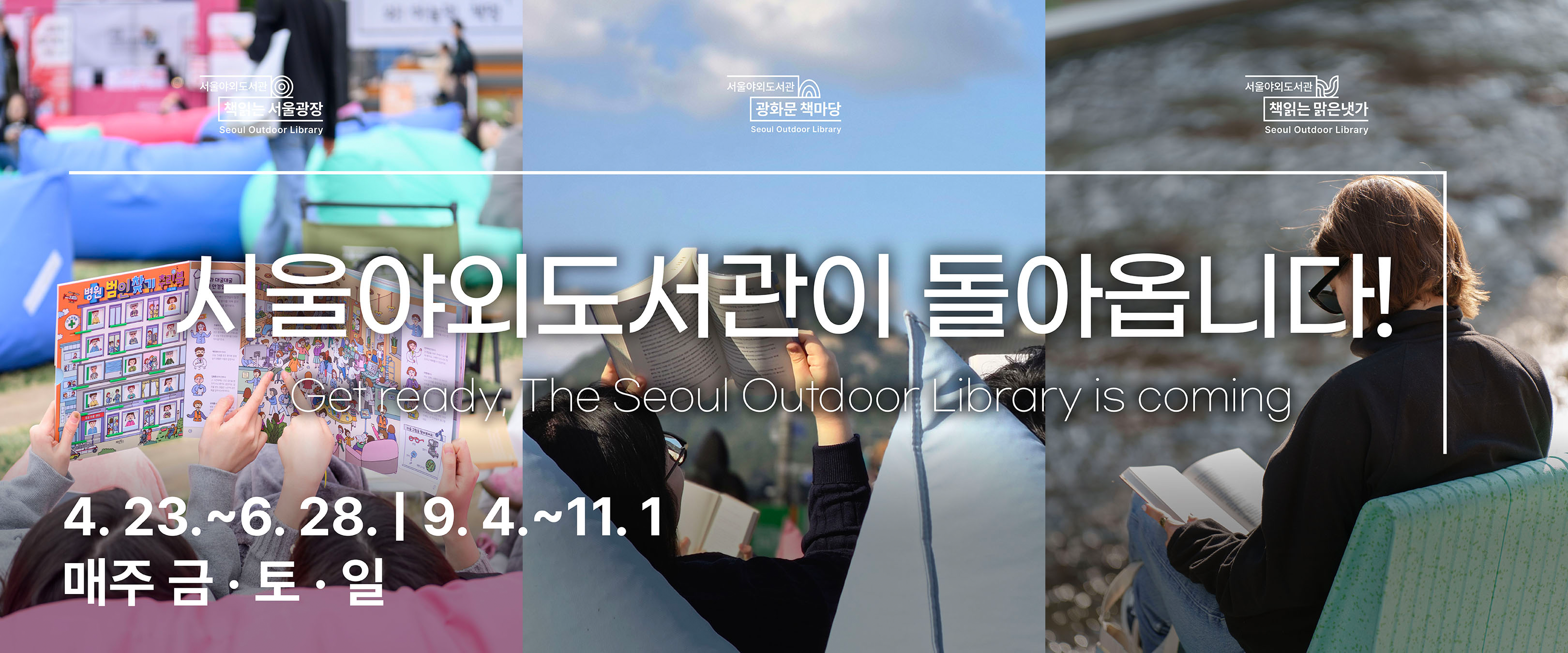 2026년, 서울야외도서관이 돌아옵니다 📖 봄이 오면, 서울은 다시 읽기 시작합니다 🌿 도심 한가운데서 내 취향대로 읽고, 쉬고, 머무는 시간 잠깐의 여유가 필요할 때 서울야외도서관에서